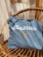Pochette velours camel, personnalisée à la main dans notre atelier lyonnais.